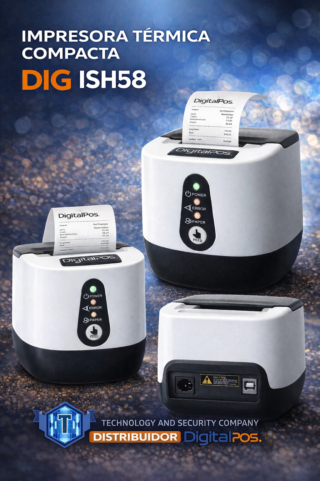 La Impresora Térmica DIG-ISH58 es un equipo de impresión directa por calor, diseñada para aplicaciones de punto de venta (POS) que requieren alto rendimiento, confiabilidad y eficiencia operativa. Su diseño compacto permite una fácil integración en espacios reducidos, garantizando una impresión rápida, silenciosa y de alta calidad.
